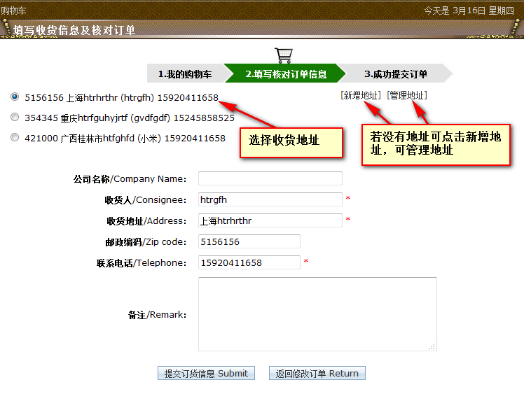 1.添加收货地址