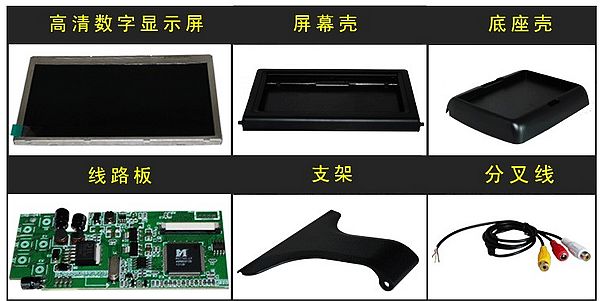 4.3"可折叠式车载显示器LCD背光高清显示屏.标配:显示屏,电源线,说明书。