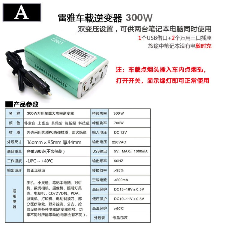 车载逆变器,12v转220v,300w多功能充电
