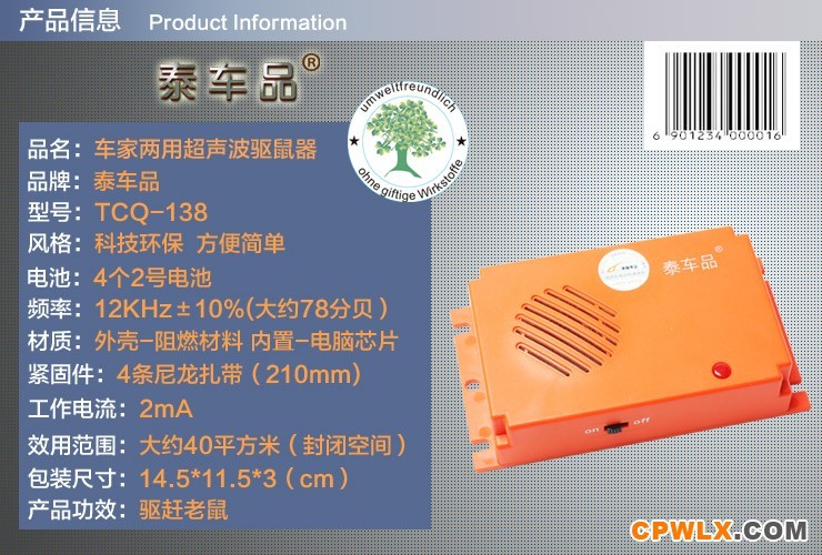 品名:泰车品TCQ-138多用途超声波驱鼠器