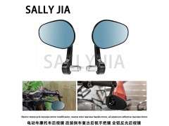 电动车摩托车后视镜 改装倒车复古后视手把镜 全铝反光后视镜