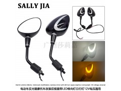 摩托车反光镜后视镜带LED转向灯日行灯12V通用