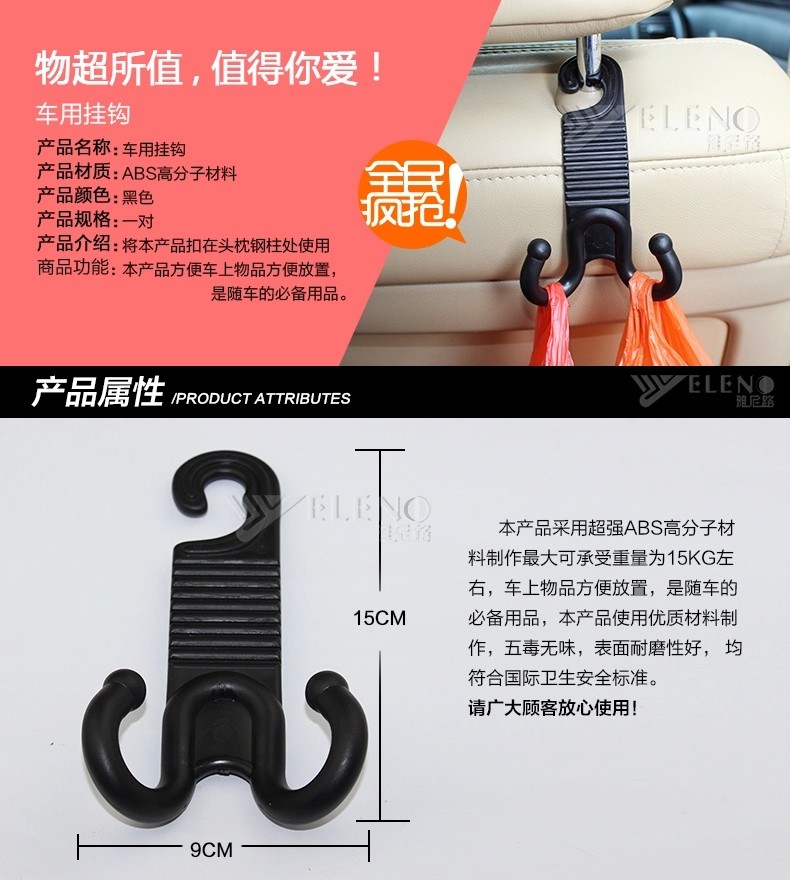 Y-137多功能汽车挂钩车用 车内方便双挂钩 椅背置物挂钩