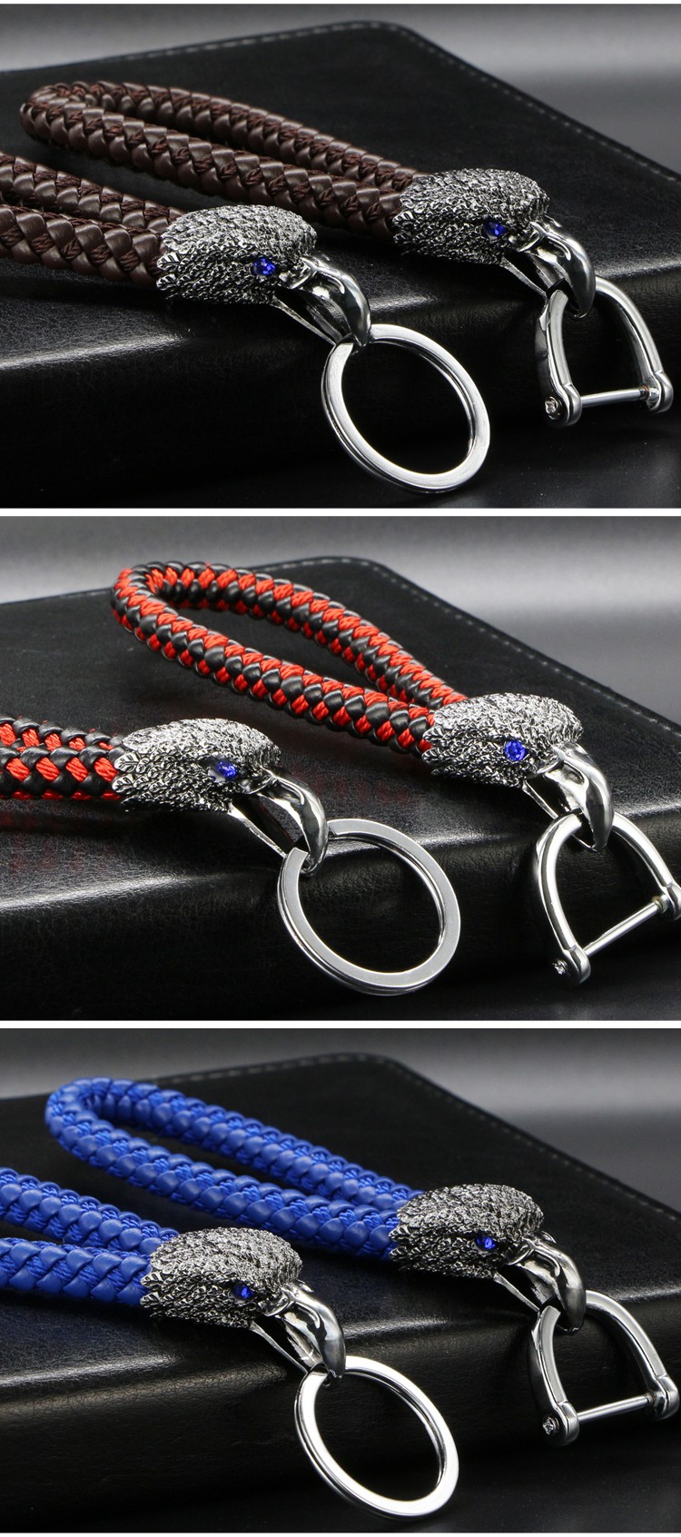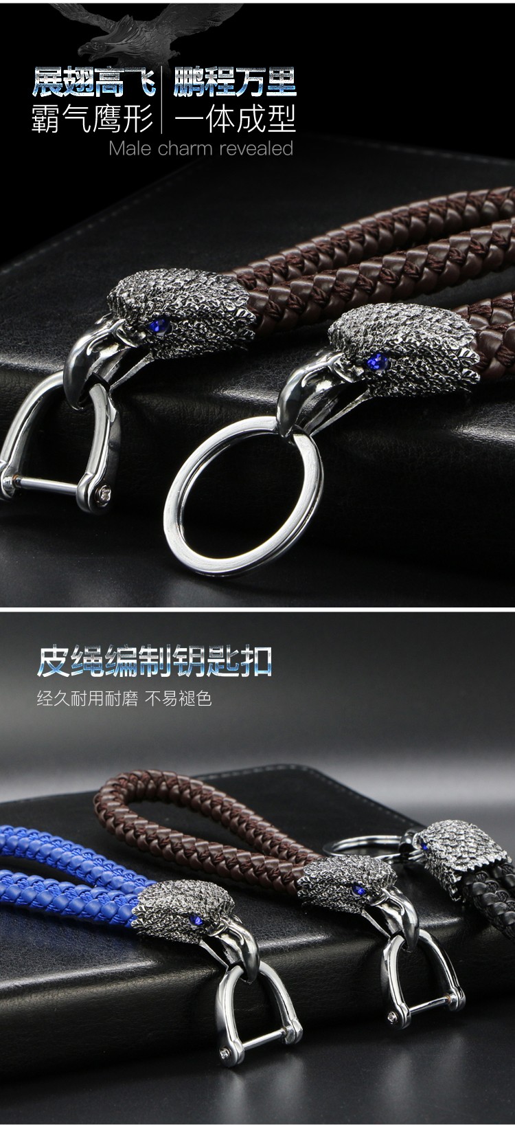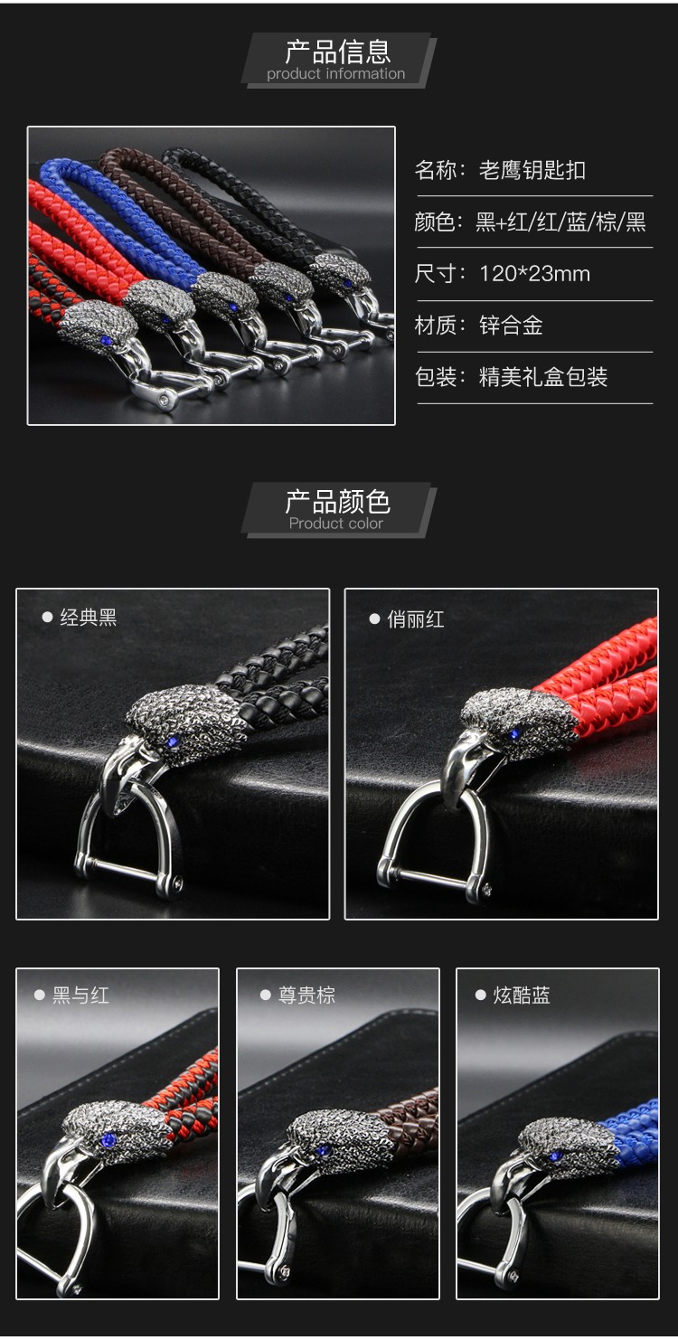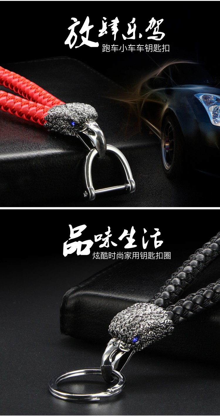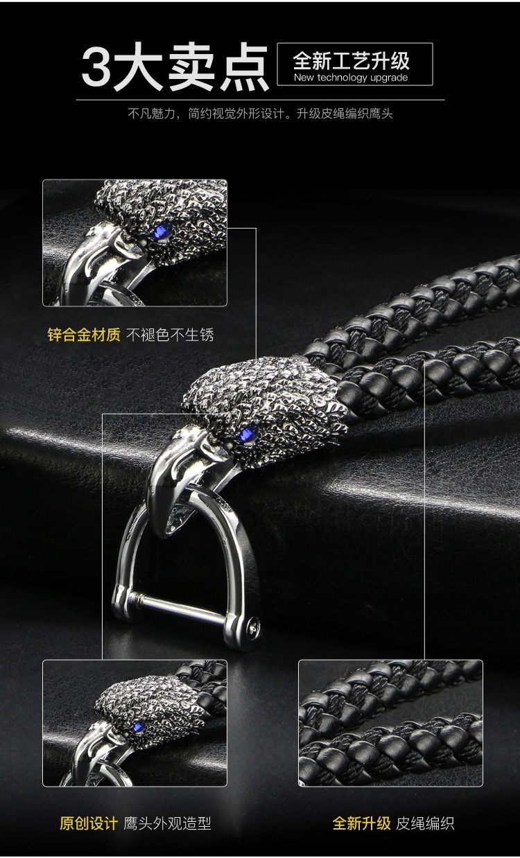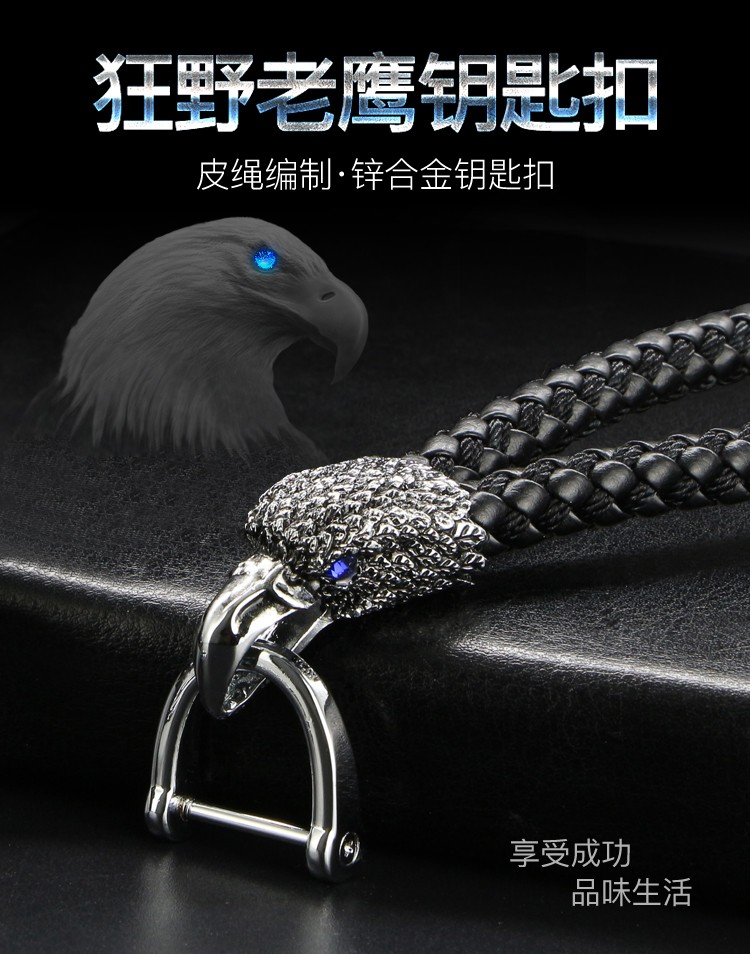 高档金属老鹰皮绳钥匙扣