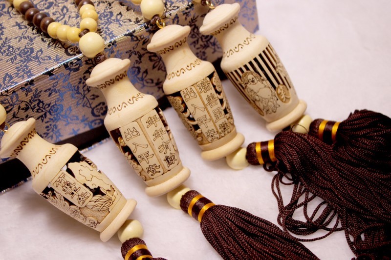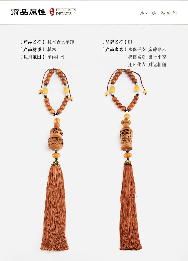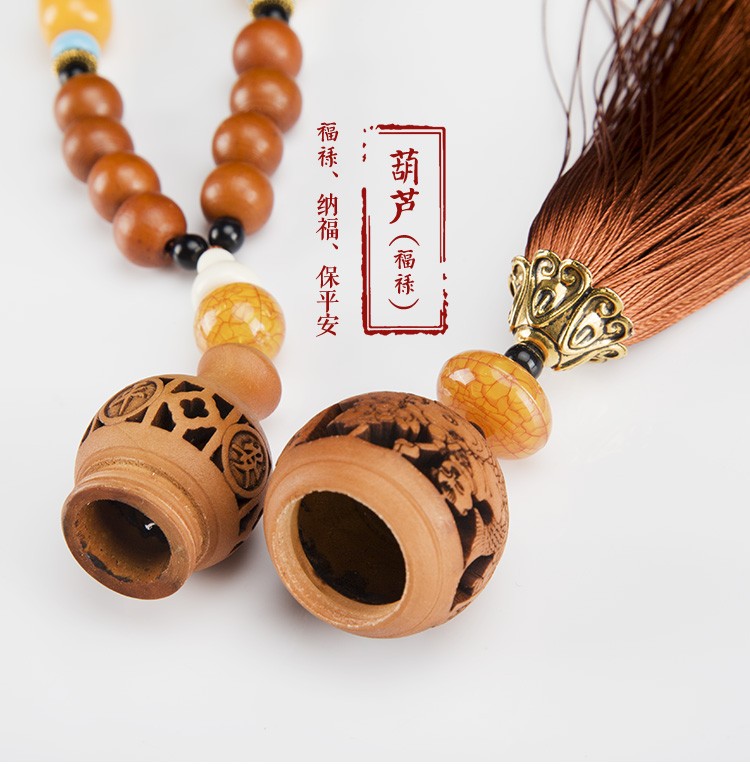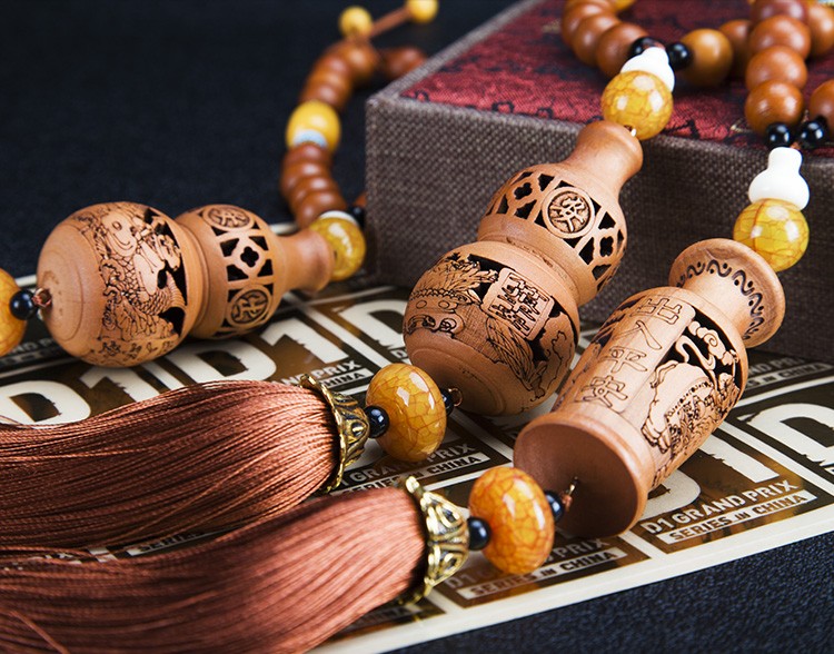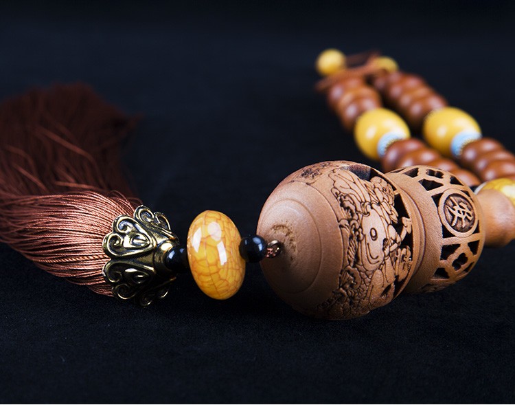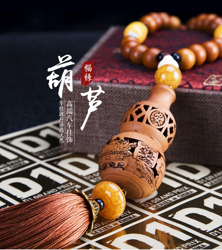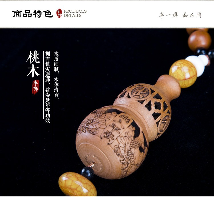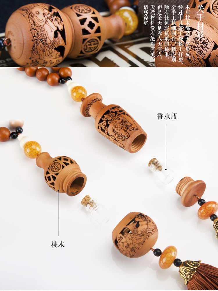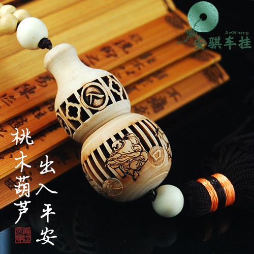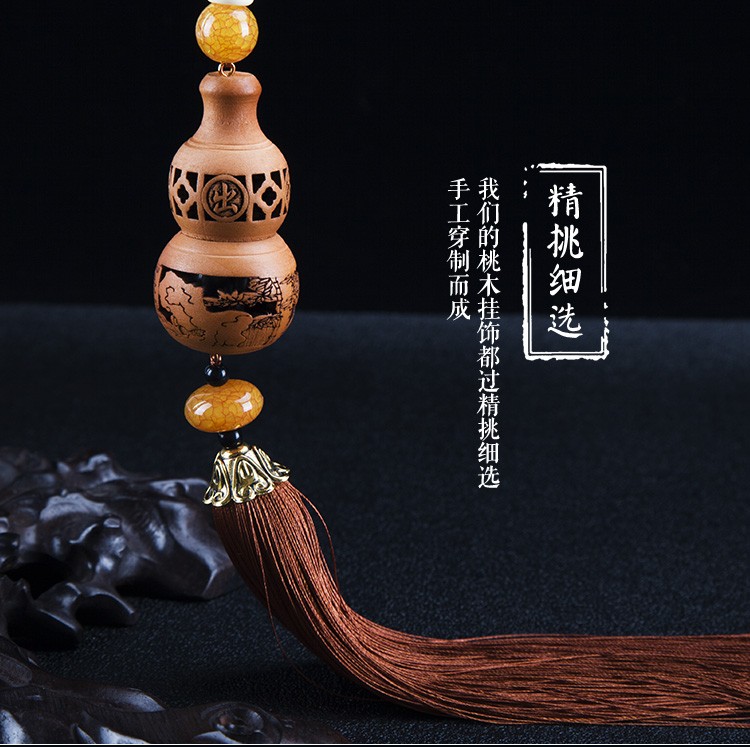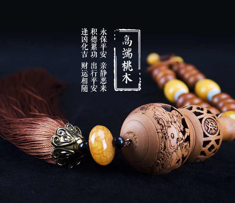 天然桃木精致镂空雕刻汽车挂件