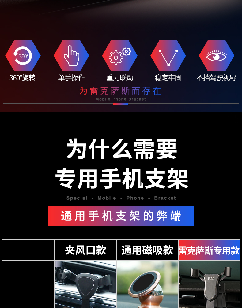 雷克萨斯专车专用重力手机支架