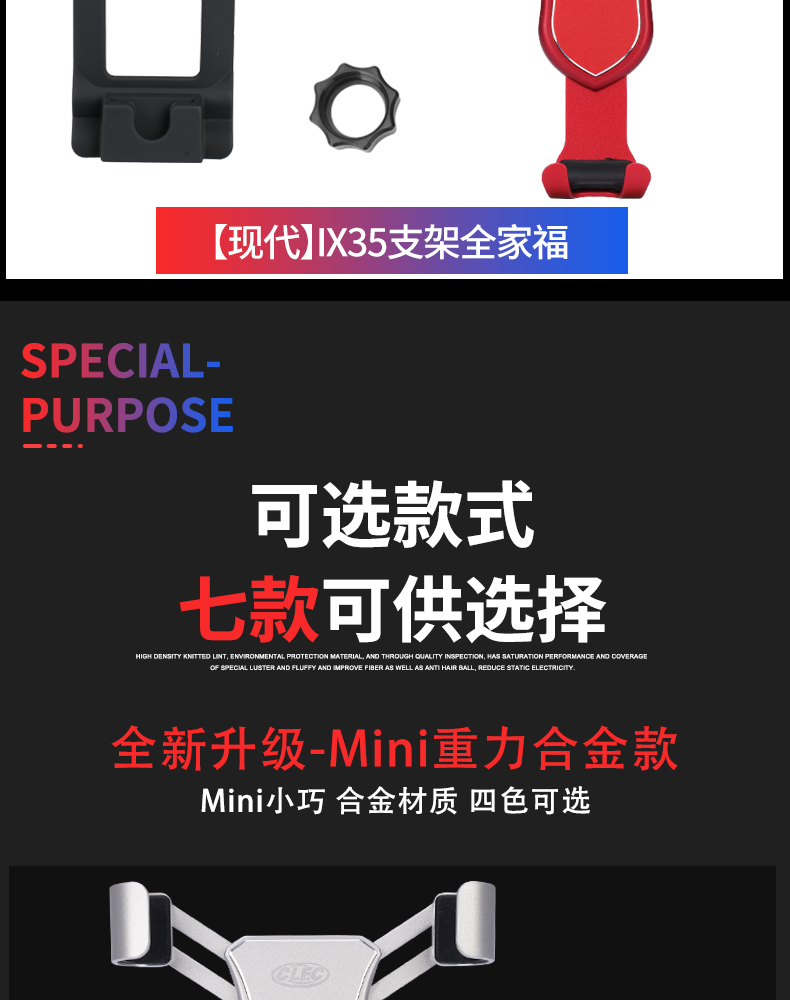 现代专车专用重力手机支架
