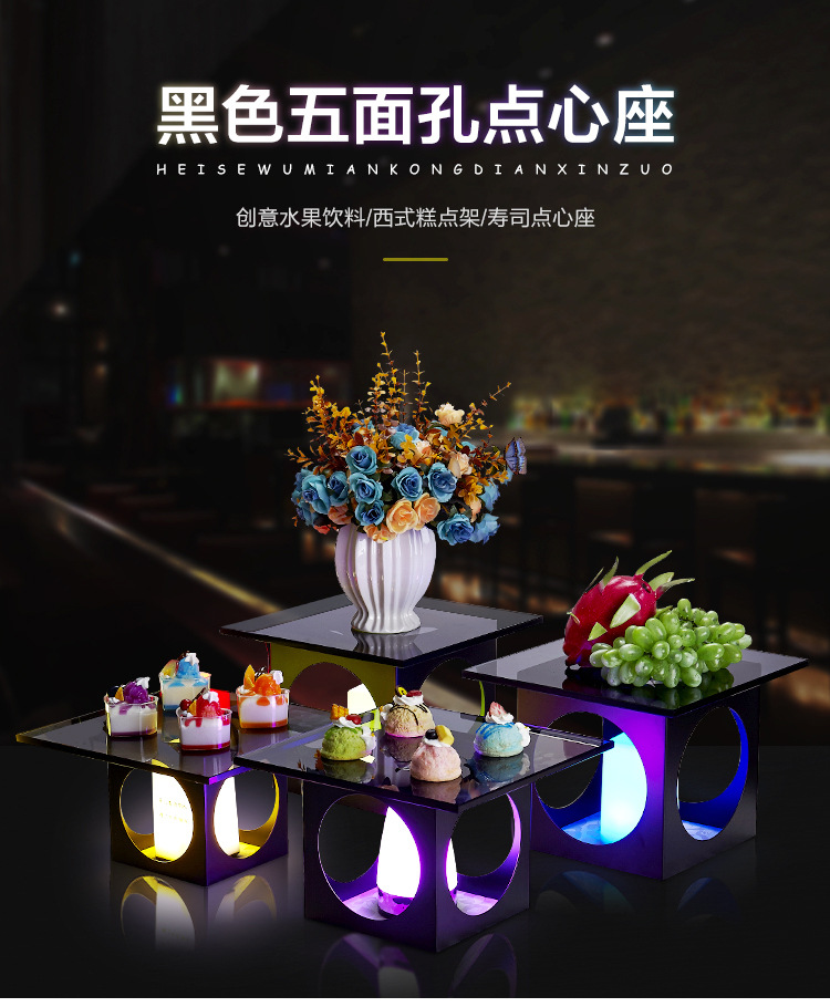 黑色五面孔摆台点心座冷餐茶歇酒店甜品糕点架展示架