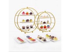 镀金圆形茶歇架自助餐展示糕点架